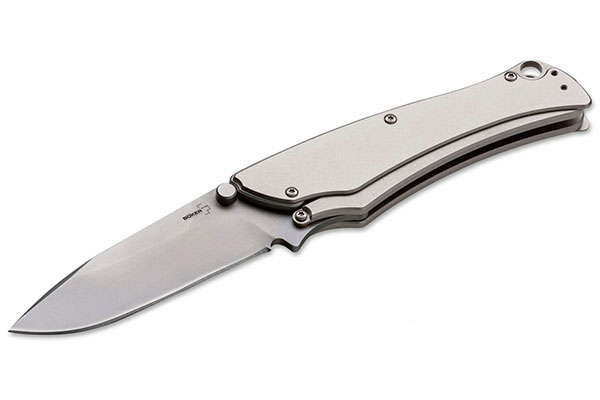 Клинок ножа BK01BO040 выполняется из AUS8 — крепкая сталь от японского производителя. Она отлично сочетает гибкость и твердость, нож обладает хорошим резом, отлично противостоит коррозии. Тип используемого шлифа — Hollow Grind. Для того, чтобы придать ножу защиту от бликов, царапин и повреждений, на клинок наносят покрытие типа Bead Blast. Для лайнера материалом служит сталь-нержавейка. Чтобы открыть клинок, нужно воспользоваться флиппером. Ножи BK01BO040 от компании Boker имеют повышенную надежность и безупречное качество, они входят в группу EDC, что расшифровывается как Every Day Carry. Клинок имеет матовый цвет, его прочность определяется шкалой Роквелла и равна она 57-58 единиц HRC. В сложенном положении длина ножа равна 102 мм. Защитным замком является Griploc. Как и большинство других ножей от немецкого производителя, традиционно формой клинка считается drop-point. В данной марке используется прямой тип заточки. Рукоятка имеет серый цвет.