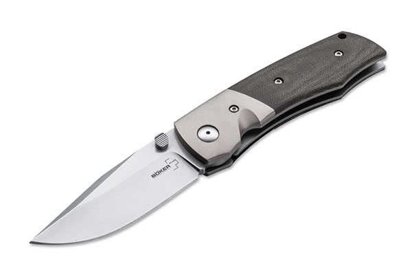 BK01BO311 — это отличный нож, который имеет распространенную форму, его часто можно встретить на рыбалке, а также в туризме. Усиление кончика ножа происходит при помощи фальшлезвия. На 2/3 ширины обуха приходятся спуски. Клинок и рукоять имеет мелкие вырезанные засечки, сделанные специально под большой палец. Клинок имеет односторонний шпенек, имеется скос, крепление находится на торксе, это дает ему возможность переставляться под левую руку. Материалом для острого лезвия служит сталь отличного качества, это VG-10. Японский сплав богат такими компонентами, как молибден и легированный кобальт. За счёт применения таких элементов удается достичь хорошей вязкости и прочности. Шлифом, то есть сечением клинка выступает Flat Grind. Антибликовый состав, который применяется против царапин, наносится на клинок — это Stone Wash. Для создания больстера используется титан. Накладки для рукоятки выполняются из микарты. Дизайнером ножей такого типа называют Чарльза Мэрлоу. Рукоятка очень стильная, материал микарта, ее цвет темно серый. Толщина клинка равна 3.1 мм, при этом его длина равна 84 мм, а твердость 60-61 HRC. Замком, выполняющим роль фиксатора для лезвия, выступает Liner Lock. Такие ножи особенно любят охотники, часто ножи Boker называют карманными.