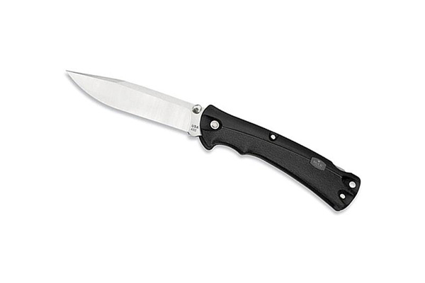 Складной нож марки Buck Lite MAX B0486BKS относится к бюджетной линейке. Клинок легче обычных моделей и его вес равен 88 граммам. Материал для рукоятки — ударопрочный пластик. Также на рукояти нет стальных лайнеров. Поэтому и цена на нож ниже обычного. Минус клинка заключается в том, что нож пользователю придется каждый раз складывать обеими руками. Замок у этой модели очень тугой и располагается далеко от лезвия. Так что вам придется поднакопить сноровки, для того чтобы дотянуться до замка.