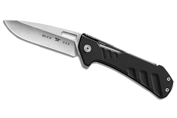 Buck Marksman B0830BKS – нож с эксклюзивной и надежной полуавтоматической системой открывания. Специальная пластина, монтированная на ручке ножа, при открывании сообщает клинку импульс, повышающий скорость выскакивания. При закрывании, эта пластина сдвигается вверх одной рукой, другой лезвие задвигается в рукоять. Хотя такой вариант не особо удобен, его надежность выше, чем у многих полуавтоматических замков. Как и любой подвижный механизм, со временем замок Marksman изнашивается. Положение его регулируется винтом, подкручивая/ослабляя который, можно добиться нужного положения.