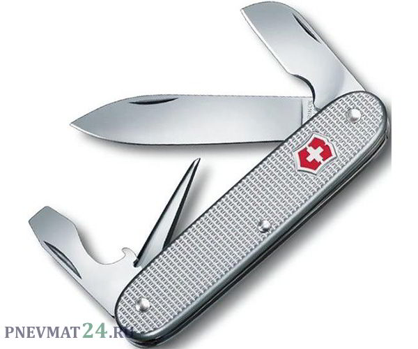 В комплекте мультитула идет 7 инструментов, которые открываются в ноже в 4 ряда. Каждый элемент edc-шника изготовлен из высококачественной нержавеющей стали. Рукоять сделана из рифленого алюминия Alox, украшенная логотипом компании и обладающая противоскользящими свойствами. Дополнительно в рукоять встраивается специальная запорная система, которая фиксирует инструмент в открытом или закрытом состоянии. Благодаря этому пользоваться ножом еще безопасней. С многофункциональником Victorinox любая задача будет вам по плечу.