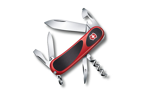 Цветовая гамма и форма ножа придают изделию особый стиль. Дизайн до мелочей продуман, а качество швейцарских изделий не вызывает сомнений. Для любого мужчины нож из коллекции Evolution будет прекрасным подарком, ведь он не только стильный, но и функциональный, а главное надежный. Victirinox Evogrip предлагает широкий выбор товаров, любому охотнику, рыбаку, дачнику или путешественнику найдется нужный инструмент, который сможет удовлетворить их запросы. Ножи от Evogrip оснащены 13 функциями и содержат 9 элементов. Это: штопор, пилочка для ногтей, пинцет, шило-кернер, зубочистка, открывалка для банок c консервами, кольцо для ключей, большой клинок, имеющий систему блокировки.