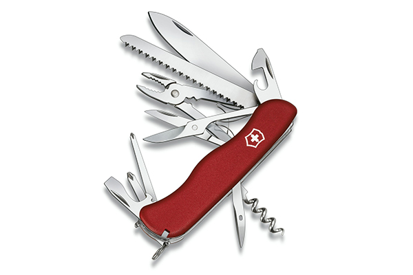 Данная модель – это 18 отдельных инструментов в одном компактном наборе. Кроме фиксирующегося лезвия нож снабжен инструментом для удаления изоляционного материала, пинцетом, штопором, отверткой, открывалкой для консервов и бутылок, плоскогубцами, ножницами, пилой по дереву.