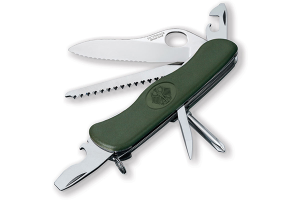 Великолепная многопрофильная модель Victorinox Military one-hand (0.8461.MW4DE) — модель швейцарского ножа, которая вполне способна проделать большое количество работы. Складной нож Victorinox Military One Hand компактный, его масса составляет 89 грамм и в нерабочем состоянии его длина достигает 111 миллиметров. Эта не громоздкая конструкция собрала в себе огромное численность разных предметов, которые могут выполнять более 11 назначений. Victorinox Military one-hand (0.8461.MW4DE) предоставит Вам и универсальный отточенный клинок с гладким режущим краем из надежной и износостойкой нержавеющей стали и комфортной системой открытия одной рукой, рукоятка сделана из нейлона. Также в Victorinox Military One Hand можно найти штопор и приспособления для открывания бутылок и консервных банок, пилу, устройство, для снятия изоляции, плоскую и четырехгранную отвертку, и кольцо для подвески.