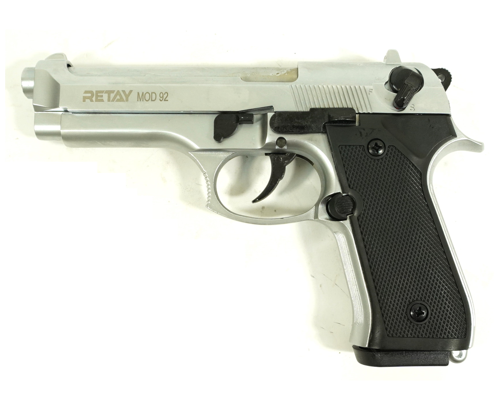 Retay MOD92 (Beretta) 9mm охолощенный – аутентичная копия боевого прототипа, подходит для получения опыта обращения с оружием, для коллекций, для имитации выстрела во время соревнований, в критической ситуации станет орудием самообороны.