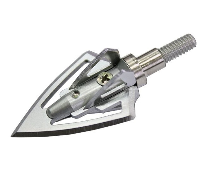Данная модель наконечника выполнена как двухлезвийный вариант с вспомогательными небольшими лезвиями перпендикулярными основным. Два основных лезвия наконечника делают достаточно широкий рез, а вспомогательные лезвия увеличивают проникающую способность, а также расширяют диаметр раневого канала. Благодаря такой необычной конструкции данный вариант охотничьих наконечников Topoint TP235 МИГ стал одним из самых опасных для зверя.