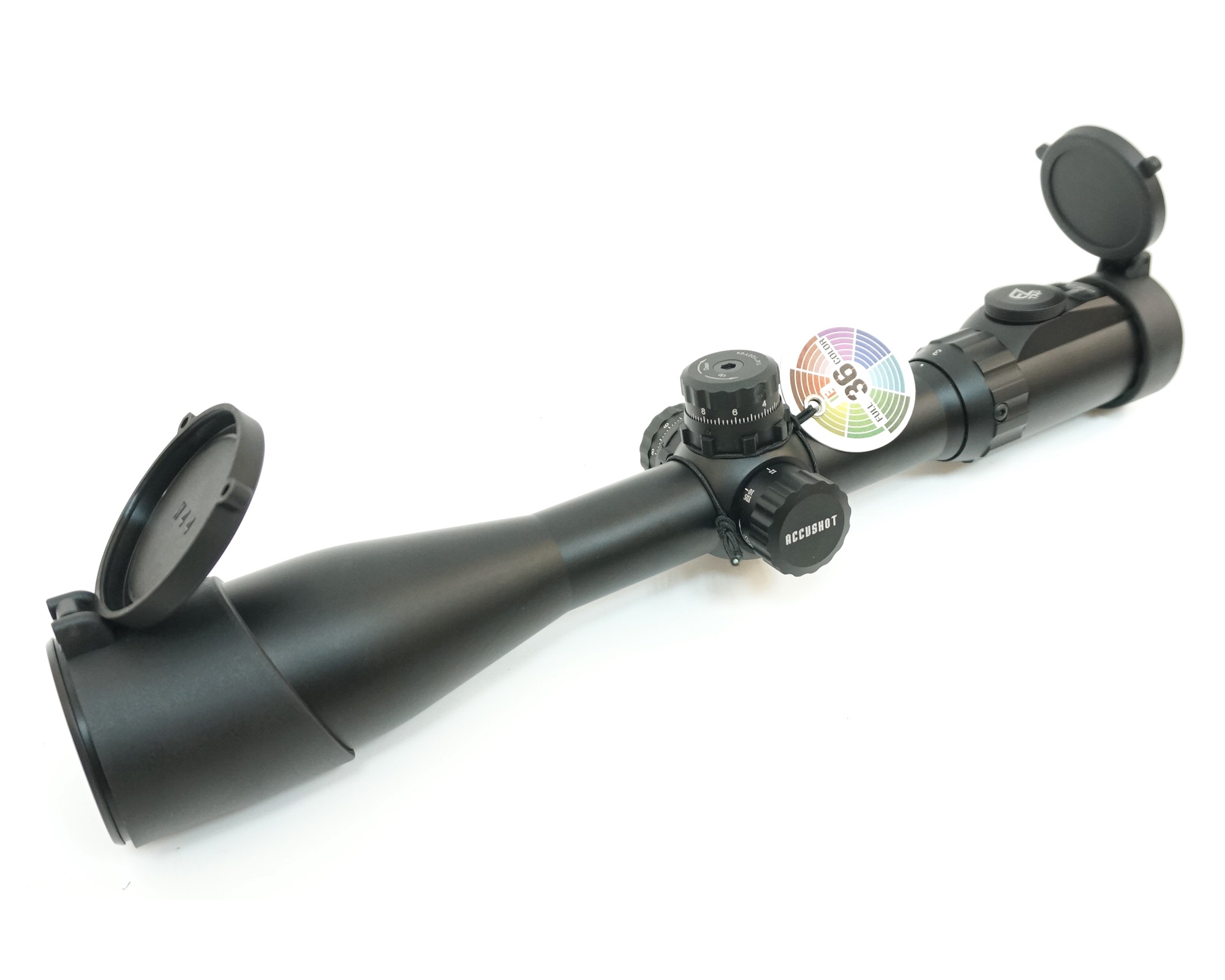 Leapers 3-12×44 Accushot Tactical имеет диапазон увеличения 3-12 крат, и рассчитан на работу по целям на среднем и большом удалении. Диаметр объектива равен 44 мм. Коэффициент светопропускания – более 95 % за счет изумрудного просветленного покрытия, это позволяет получить отличное изображение днем и улучшить видимость в условиях сумерек. За счет водостойкого покрытия прицел защищен от влаги и способен выдержать полное погружение в воду. Использование алюминиевого сплава обеспечивает прицелу небольшой вес – 695 г, длина прицела – 335 мм. Устройство имеет богатую комплектацию, включающую кольца с запасным винтом, стандартные крышки для линз, запасную бленду, ключ-шестигранник, а также специальную салфетку для оптики и батарейку.