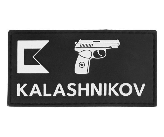 Фирменный шеврон Калашников с изображением пистолета Макарова (ПМ) и логотипом.