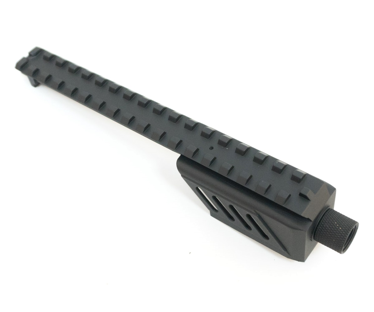 Планка из металла устанавливается на CYMA Glock 18C. Изготовлена с использованием стандартов RIS, характеризуется шириной 20 мм. На конце планки есть 14 мм отрицательная резьба для установки глушителя.
