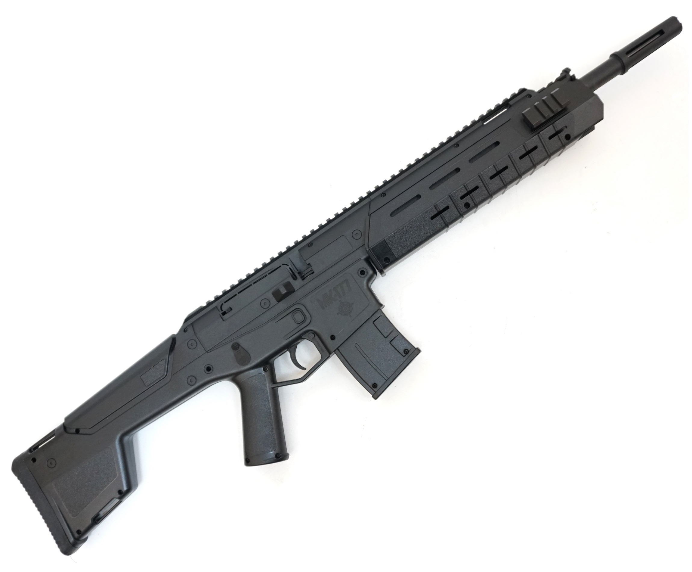 Желающим приобрести винтовку с предварительной накачкой давления стоит обратить внимание на данную модель. Пневматическая винтовка Crosman MK-177 имеет большой ряд преимуществ. Первое, что бросается в глаза, — это фантастический дизайн винтовки. Модель специально разработана для любителей фантастических стрелялок. MK-177 выпускается в двух цветовых вариантах — чёрном и бежевом. Длина винтовки составляет 838 мм, а вес не более 3,5 килограмм — это позволяет легко удерживать её на весу.