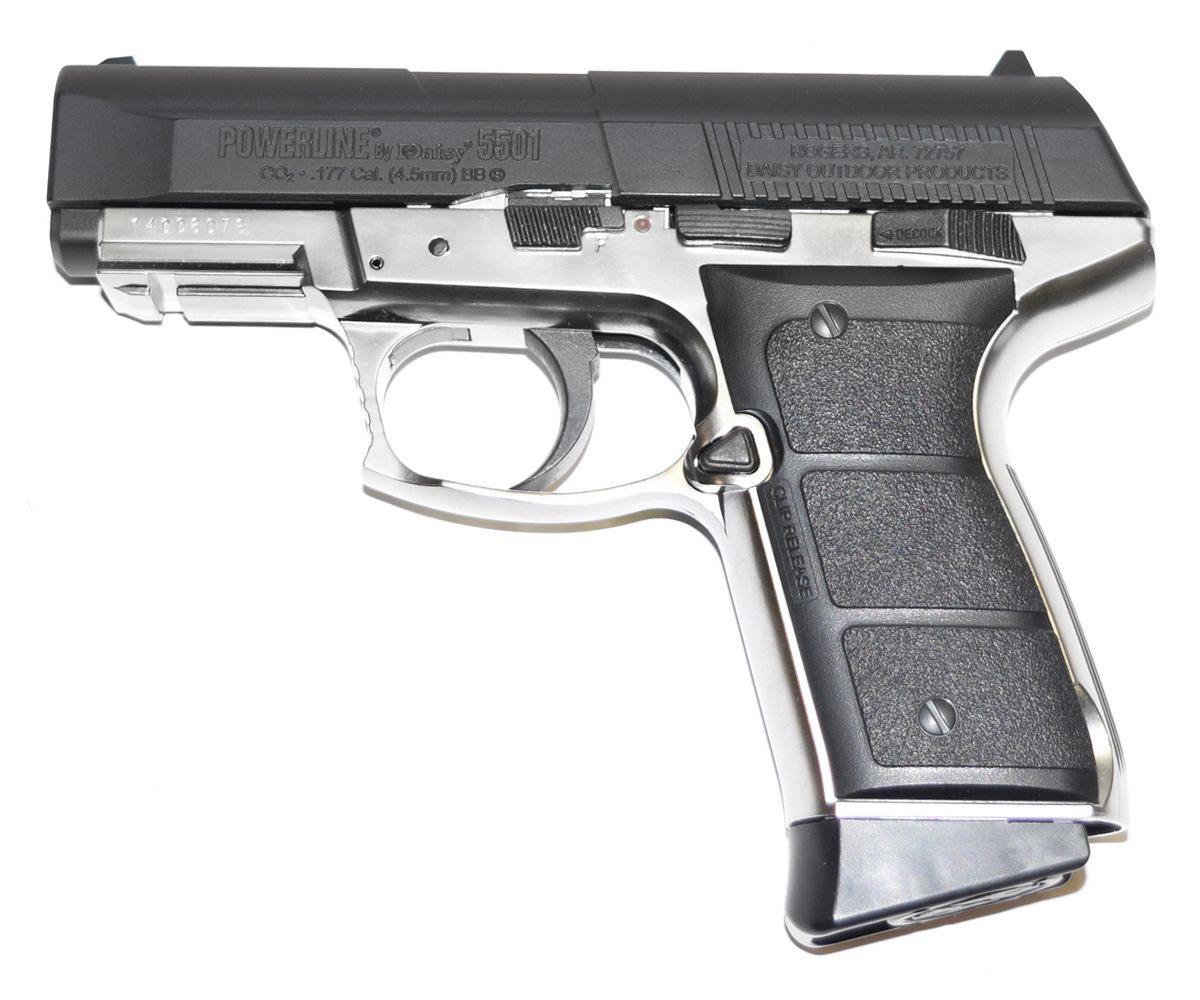 Пневматический пистолет под названием Daisy 5501 Powerline — детище американской фирмы Daisy, производство Япония. У пистолета есть функция Blowback, при помощи которой создается имитация стрельбы как из боевого пистолета. Спусковой крючок, при включенном ручном предохранителе, блокируется. Стрельбу производит при помощи 12-ти граммового баллончика СО2, сферическими пулями из стали.