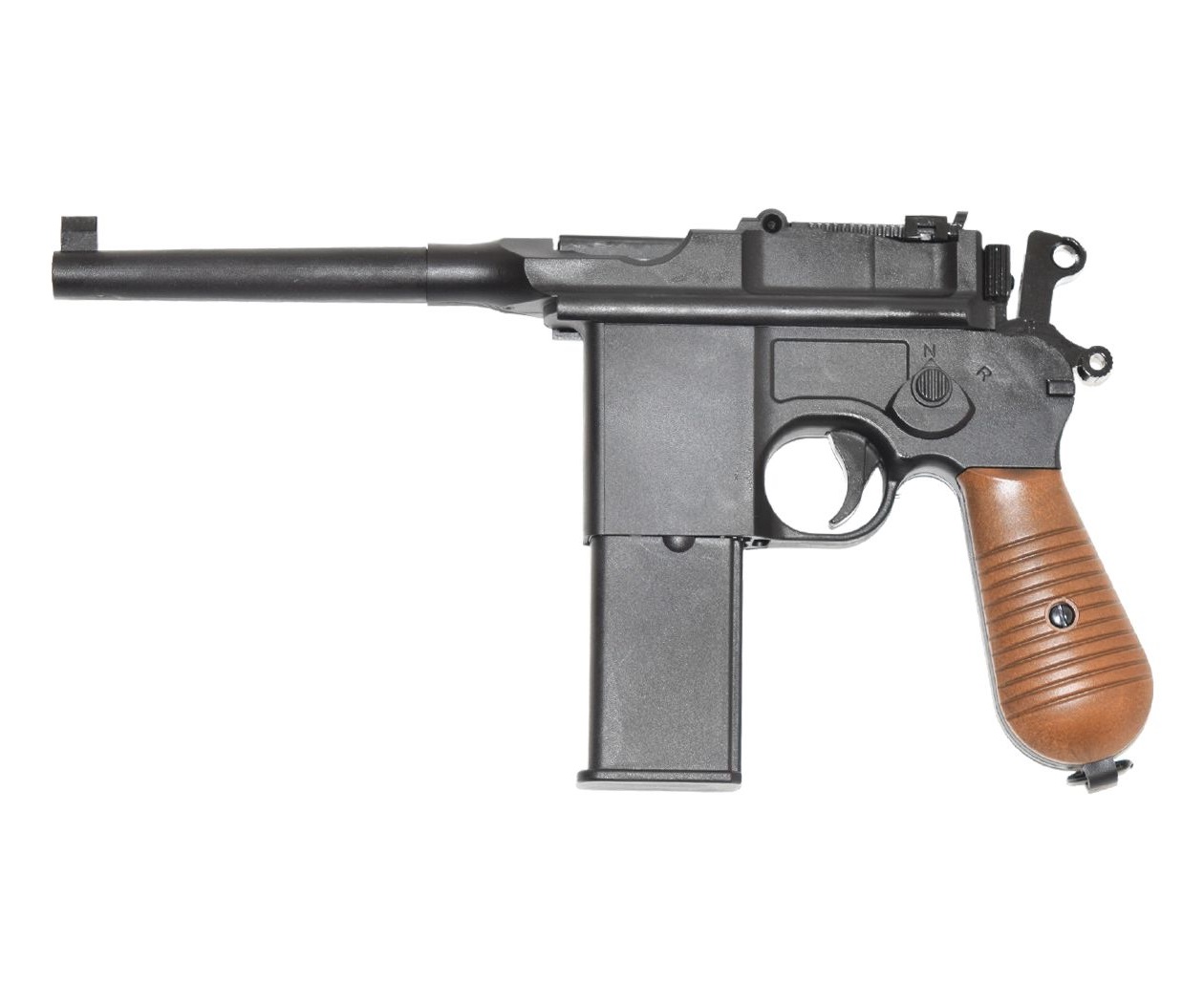 Пневматическая модель пистолета Umarex Legends C96 является копией незабываемого, поистине легендарного пистолета Маузер С96. Данное оружие восхищает коллекционеров и спортивных стрелков с момента своего рождения в 1896. У этой пневматической модели скорость вылета шарика составляет максимум 128 м/с. Прицельными приспособлениями служат неподвижная мушка и прицельная регулируемая планка. Прицел сделан аналогично огнестрельному прототипу, т. е. у пистолета секторный прицел, нанесены деления от 50 м до 1000 м.
