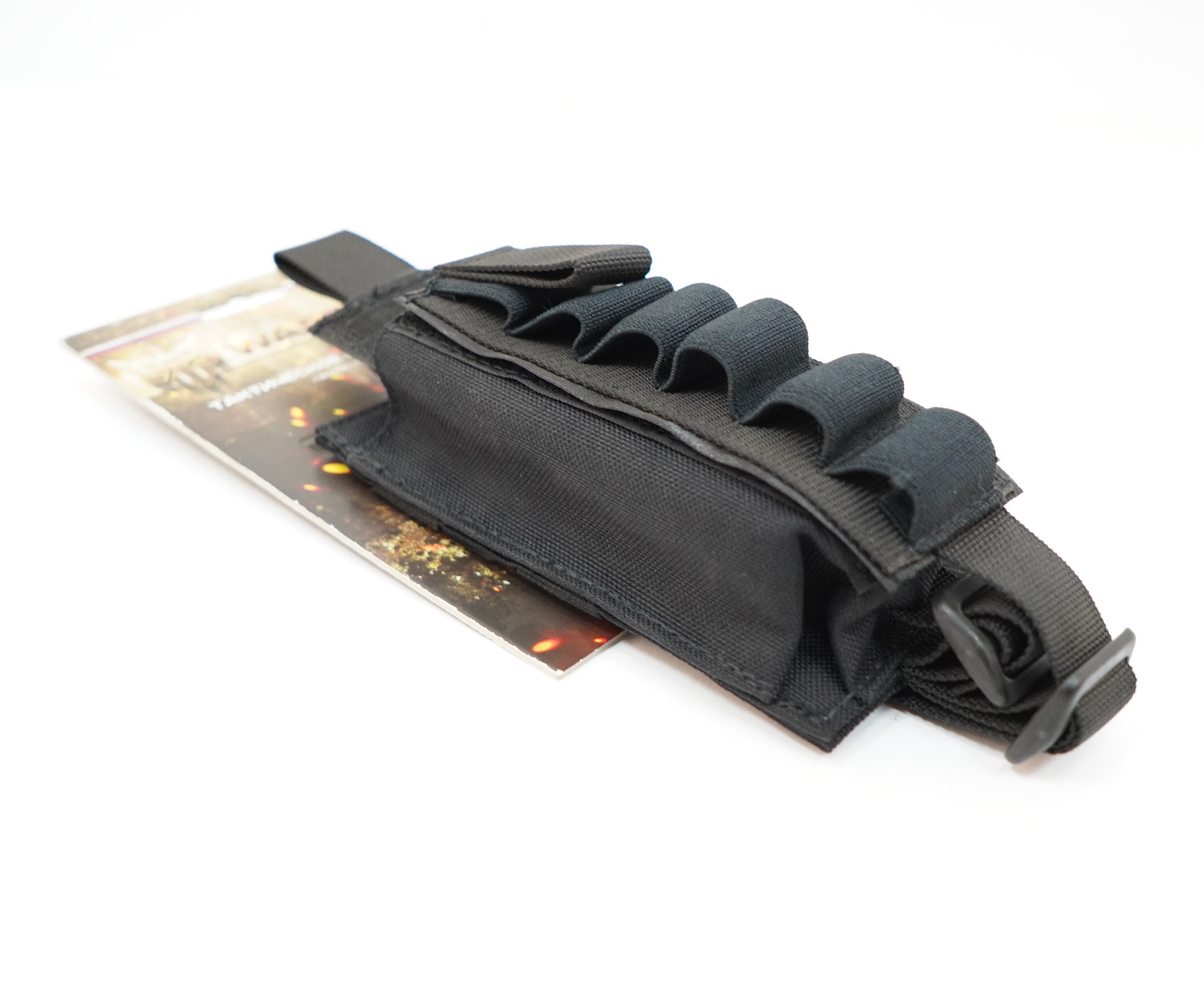 Патроны фиксируются плотными резинками, и исключают их утерю, тем не менее оставляя к ним оперативный доступ. Возможно размещение на обычном ремне. Доступен в различных цветах, данный вариант в черном цвете.