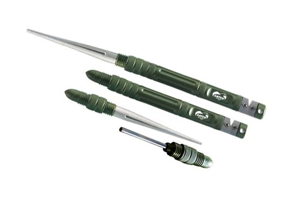 Gatco GT50015 — это универсальный гаджет, который представляет собой продвинутую точилку с приспособлением для получения огня. Устройство подходит для всех размеров лезвий, включая серрейторные. С задачей добычи искры и пламени справляется магниевый стержень. А за острые края затачиваемой поверхности отвечает съёмный алмазный элемент в виде конуса.