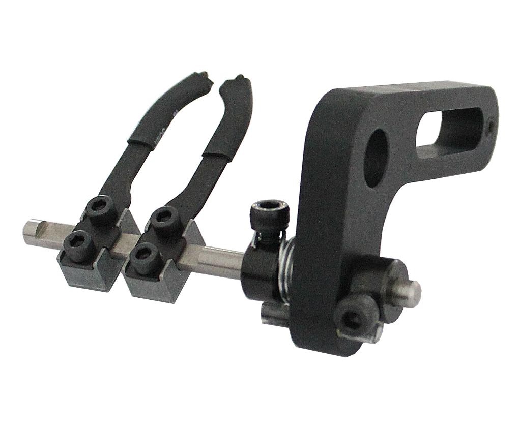 Полочка для блочного лука классической конструкции. Стрела удерживается между двумя стальными усиками, подпружиненными пружиной.