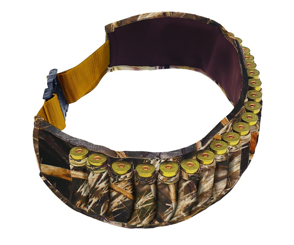 Пояс-патронташ отрытый на 25 патронов 16-го или 12-го калибра. Изготовлен из неопрена. Неопрен хорошо переносит перепады температуры, водонепроницаемый и стойкий к механическим и химическим воздействиям. Окрас пояса – камуфляж Realtree Max 4. Патронташ одевается на пояс и застегивается пластиковым карабиноми «фастекс». Материал «фастекса» — ударопрочный пластик. Размер пояса регулируется до 58 дюймов (147 см). Эластичная широкая резинка позволяет легко регулировать объем пояса, рассчитана на разное телосложение. Регулируемый размер застежки позволчет надевать патронташ как на летнюю охоту, так и на зимнюю, поверх одежды. Поясной патронташ – это классическая модель сумки для патронов, которая зарекомендовала себя как практичное и многофункциональное изделие каждого настоящего охотника. Пояс-патронташ Realtree MAX-4™ от Allen — идеальный вариант для длительной охоты, патроны находятся в зоне досягаемости и в полной боевой готовности.