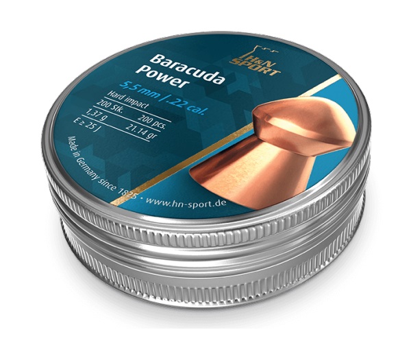 Пули H&N Baracuda Power для пневматики калибра 5,5 мм — тяжелые точные пули с полусферической головной частью, для дальних дистанций. Ствол не освинцовывается, улучшенное прохождение по каналу ствола, отсутствие контакта со свинцом благодаря специальному медному покрытию (на 20% тверже, чем сравнимые свинцовые пули). Первоклассный аэродинамический дизайн для высокой пробиваемости и проникающей способности. Малая деформация пули и высокая кучность. Поверхность гладкая. Пули в количестве 200 штук средним весом 1,37 грамм.