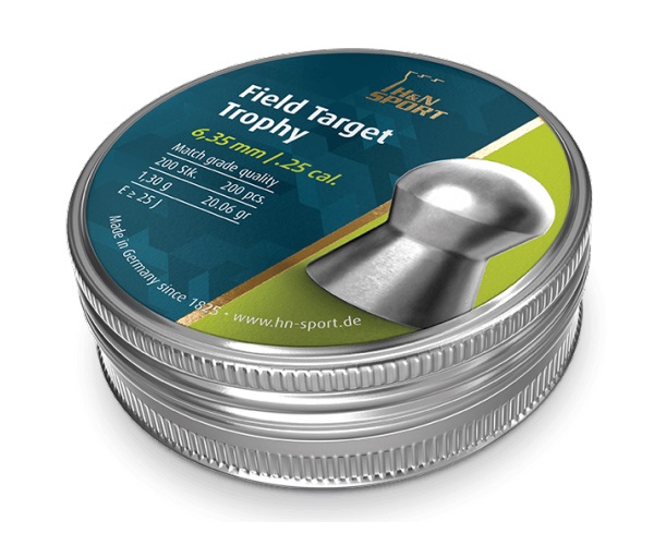 Пули H&N Field Target Trophy для пневматики калибра 6,35 мм — высокоточные пули средней тяжести с полусферической головной частью, для соревнований с настильной траекторией полета. Необычный аэродинамический дизайн для высокой проникающей способности и пробиваемости. Очень высокая кучность. Минимальное освинцовывание и равномерное распределение попаданий благодаря специальному сплаву. Поверхность гладкая. Пули в количестве 200 штук средним весом 1,30 грамм.