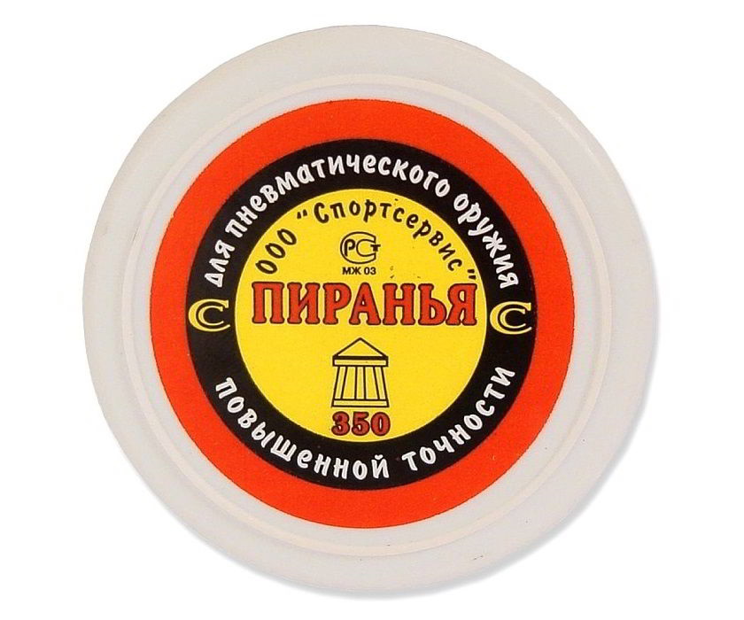 Пули Пиранья калибра 4,5 мм — круглоголовые свинцовые пули типа «диаболо». Повышенной точности для стрельбы из пневматики. Подходят к большинству моделей пневматического оружия. На юбке нет выступа-обтюратора. В упаковке 350 штук, средний вес 0,75 грамм.