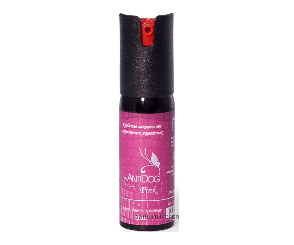 Распылитель (аэрозольный баллончик) AntiDog Pink, 25 мл – это высокоэффективное и гуманное средство защиты от агрессивных собак аэрозольно-струйного типа распыления. Производитель – ЗАО «Техкрим», распылитель относится к новой линейке средств самообороны этой компании.