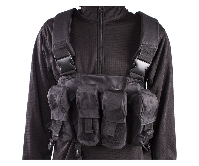 Нагрудная разгрузочная система большой вместительности для автоматчиков. Лицевая панель содержит четыре оружейных подсумка, в каждом из которых помещаются до двух магазинов АК (общая вместимость жилета составляет восемь магазинов). Тыльная сторона панели содержит карман для документов.