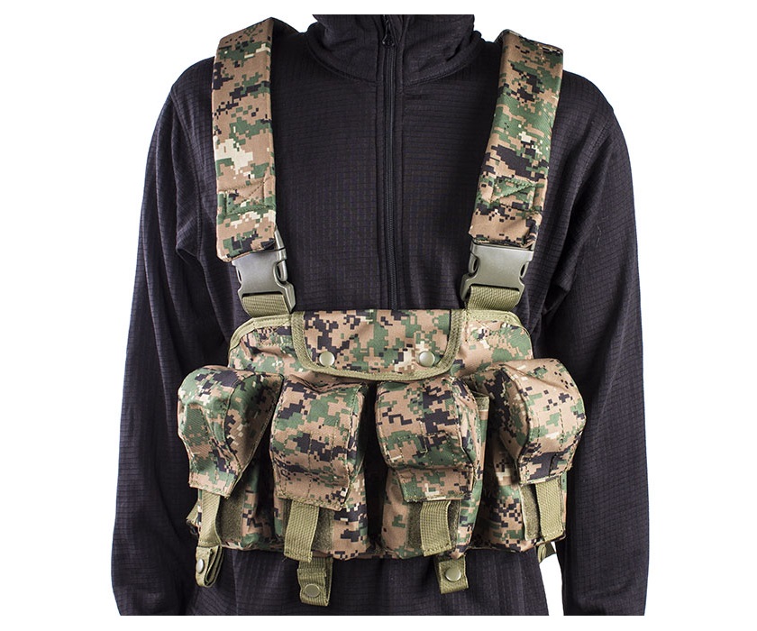 Нагрудная разгрузочная система большой вместительности для автоматчиков. Лицевая панель содержит четыре оружейных подсумка, в каждом из которых помещаются до двух магазинов АК (общая вместимость жилета составляет восемь магазинов). Тыльная сторона панели содержит карман для документов.