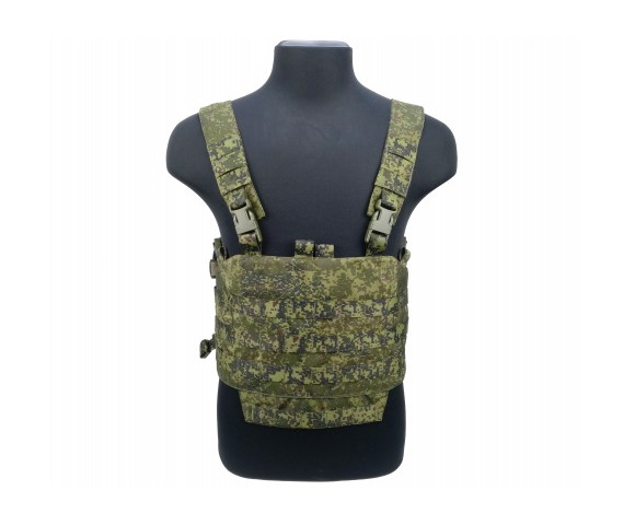 Лёгкая, универсальная нагрудная разгрузочная система MOLLE. Передняя панель имеет 12 ячеек молле в ширину и 3 ряда в высоту.
