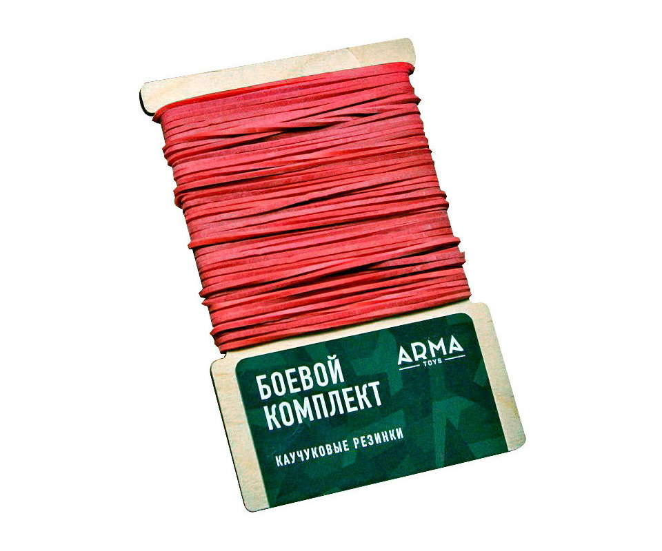 Универсальные резинки (около 25 штук), размещенные на фанерной обойме, подходящие для всех типов резинкострелов Arma.toys.