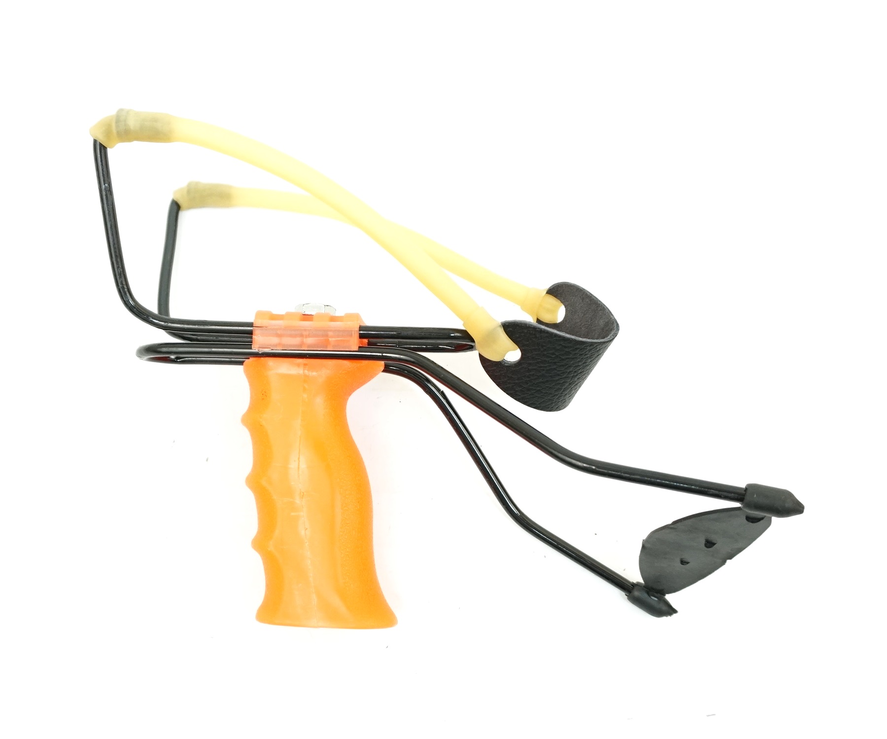 Рогатка «MB» с упором на запястье и седлом из натуральной кожи для активного отдыха, развлечений и спортивной стрельбы. Упор на запястье помогает надежно зафиксировать рогатку во время стрельбы, а легкая пластиковая ручка с рельефными выступами для пальцев позволяет удерживать ее в нужном положении продолжительное время даже физически слабым людям. Рогачек изготовлен из стали и отогнут назад под прямым углом. Это позволяет снизить неравномерные механические нагрузки на резинку при ее натяжении и избежать преждевременной порчи. Резинка представляет собой полый резиновый жгут с натуральной каучуковой добавкой. Лучшими снарядами для данной модели большой рогатки считаются 8-ми калиберные свинцовые шарики для стрельбы из рогаток.