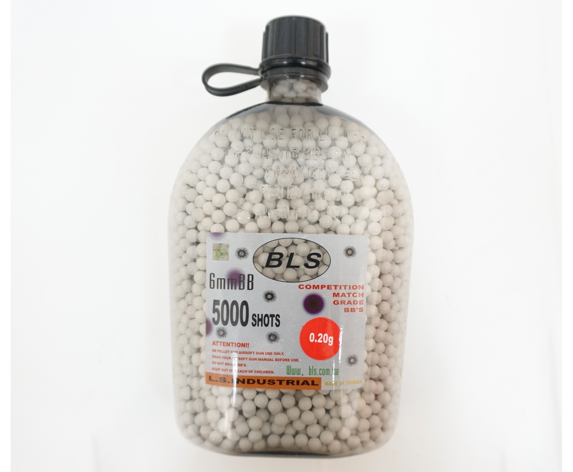 Пластиковые шарики калибром 6 мм BLS весом 0,20 грамм предназначены для стрельбы из страйкбольных пистолетов и винтовок. Количество в бутылочке-фляге — 5000 штук. Диаметр 5,95 мм, погрешность в диаметре этих шариков составляет всего 0,01 мм.
