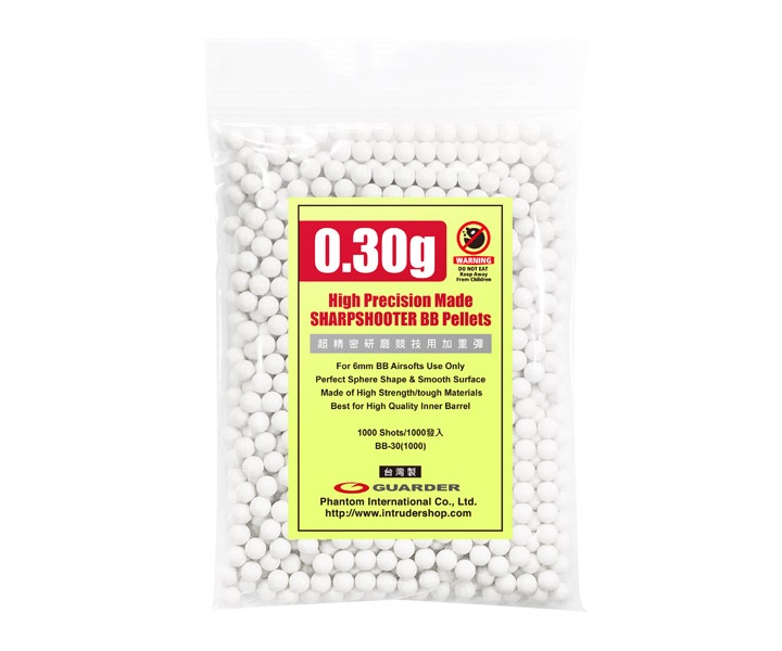 Шары Guarder BBs калибра 6 мм, белого цвета, с массой 0,30 грамм отлично подходят для стрельбы из страйкбольных пистолетов и приводов. В упаковке примерно 1000 штук.