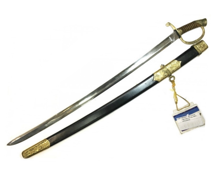 Шашка Драгунская офицерская образца 1909 г., юбилейная, «Ермак» с резьбой по металлу клинка (Р4FB/Р2Ю).