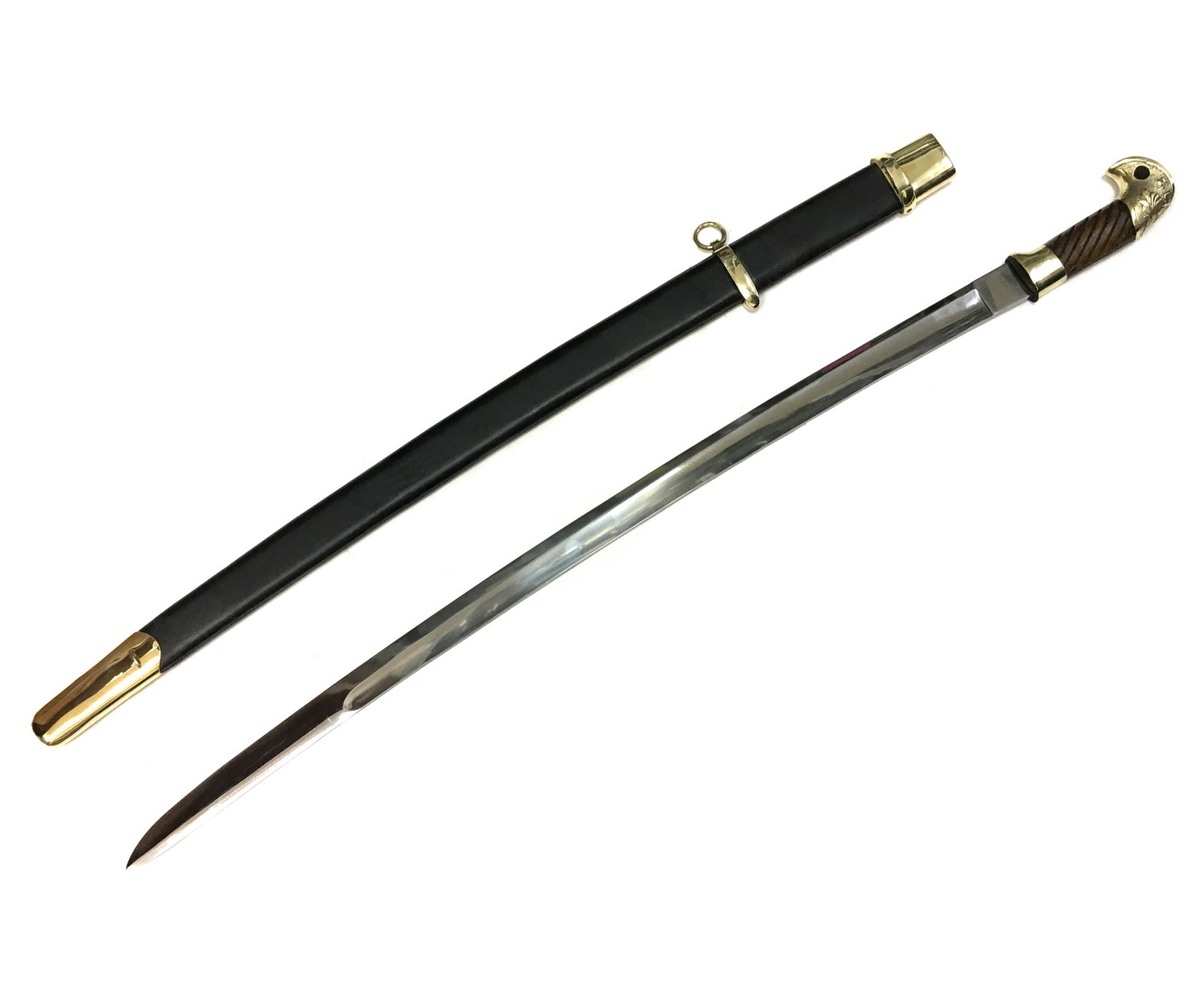 Шашка не заточена, но ее можно заточить самостоятельно, сталь высокого качества, долго держит заточку. Ножны изготовлены из дерева, латуни и натуральной кожи.