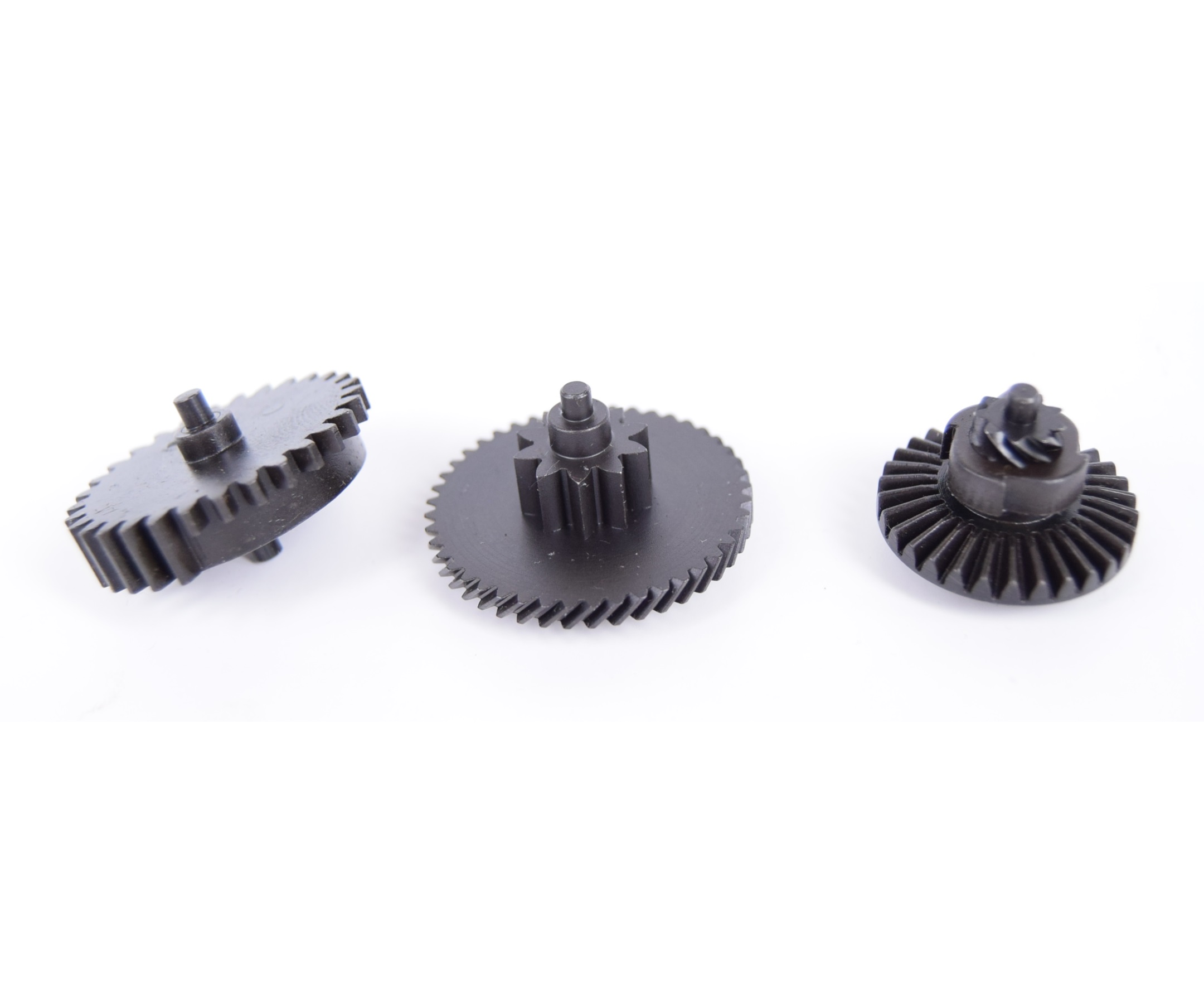 GE-02-05 — набор усиленных шестерен для страйкбольных автоматов со 2 /3 типом гирбоксов. Используется для FA-MAS/MP5/M16/AK/G3/SIG/AUG AEG SERIES (II/III BOX). Подходит для MARUI Original type. Рекомендована SP150 пружина, 9.6V аккумулятор или выше. Шестерни под полузубый поршень.