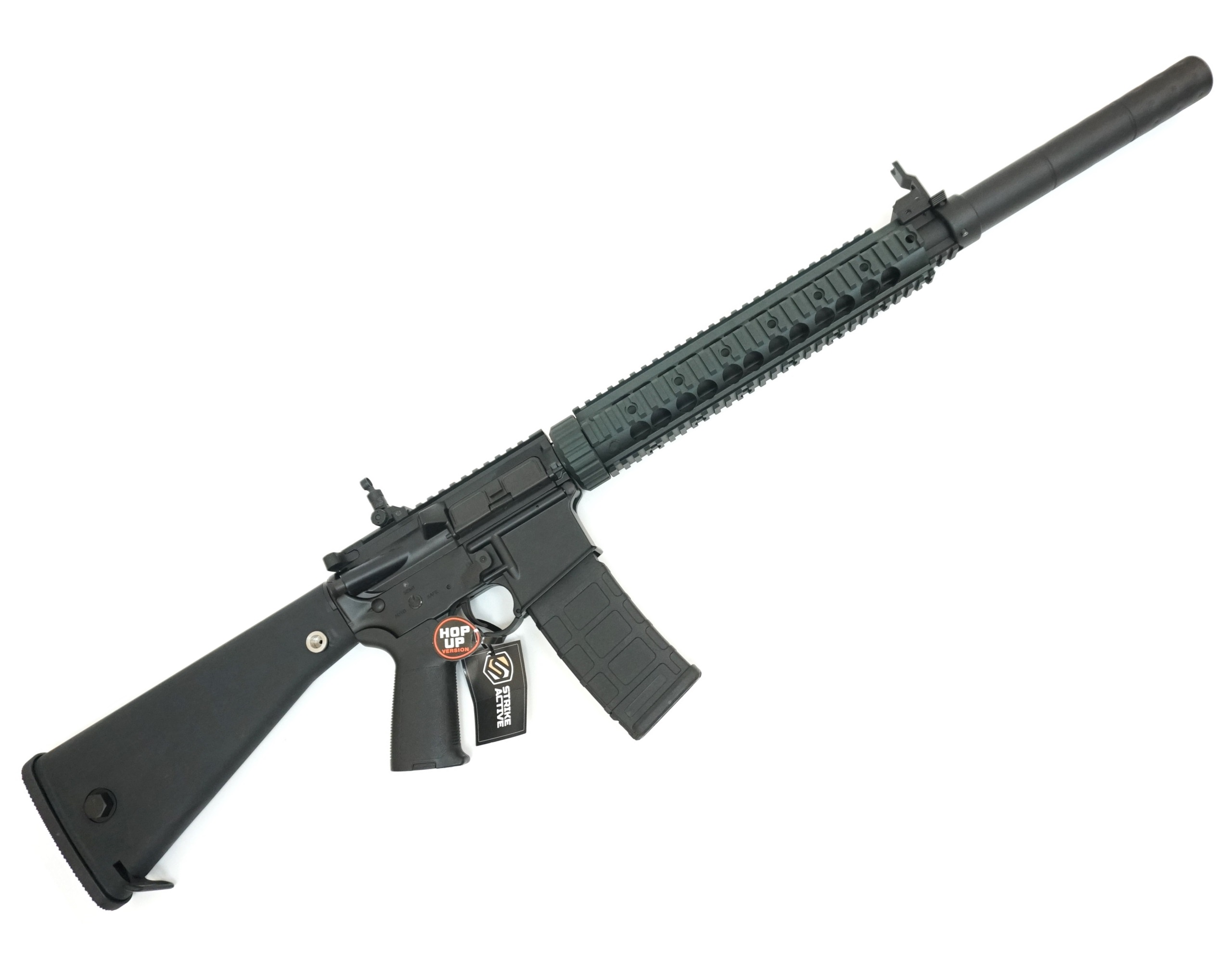 Источником энергии данной модификации выступает аккумулятор, производитель комплектует винтовку никель-металлгидридными аккумулятором 9,6 V 1200mAh с разъемом мини-Тамия, место его расположения – отсек приклада. Чтобы установить аккумулятор, необходимо снять затыльник, зажав кнопку на прикладе, и убрать заглушку. Установлен простой и надежный гирбокс второго поколения и регулируемая камера хоп-ап. Скорость выстрела – до 130 м/с.