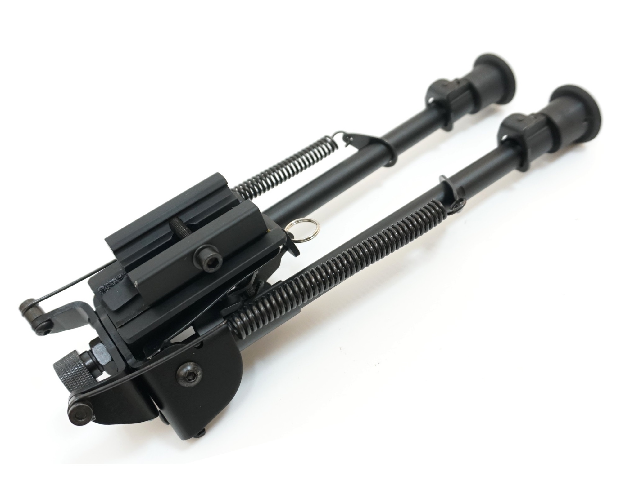 База сошек – цельная, прочная, поворачивающася (угол поворота достаточно ограниченный). Крепятся сошки под цевьё за антабочный винт или за планку Picatinny. Идеально подходят для стрельбы лежа. Длина ножек регулируется ступенчато от 228 мм (в сложенном виде) до 355 мм (в полностью разложенном виде). Каждая ножка состоит из 2-х секций. При выдвижении ножки до конца, она автоматически стопориться. Уникальная система Posi-lock надежно удерживающая ногу сошки от складывания. Резиновые наконечники на ножках сошки, дают стрелку дополнительное преимущество при стрельбе со скользких поверхностей.