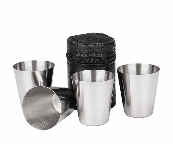 Стопка MINI. Объем 40 мл, из нержавеющей пищевой стали. 4 шт. в чехле из кожзама. Вес: 90 грамм.