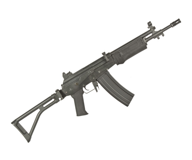 Привод Cyma Galil SAR отличается высоким качеством материалов. Корпус изделия и его приклад стальные, ствол и часть высоконагруженных элементов изготовлены из более легкого сплава алюминия, а цевье – из пластика ABS. За счет складного приклада автомат удобен и для стрельбы на средние дистанции, и в ближнем бою. Весит автомат 3 кг, длина – 88 см. Продается в комплекте с аккумулятором, зарядным блоком, а также магазином и памяткой по эксплуатации.