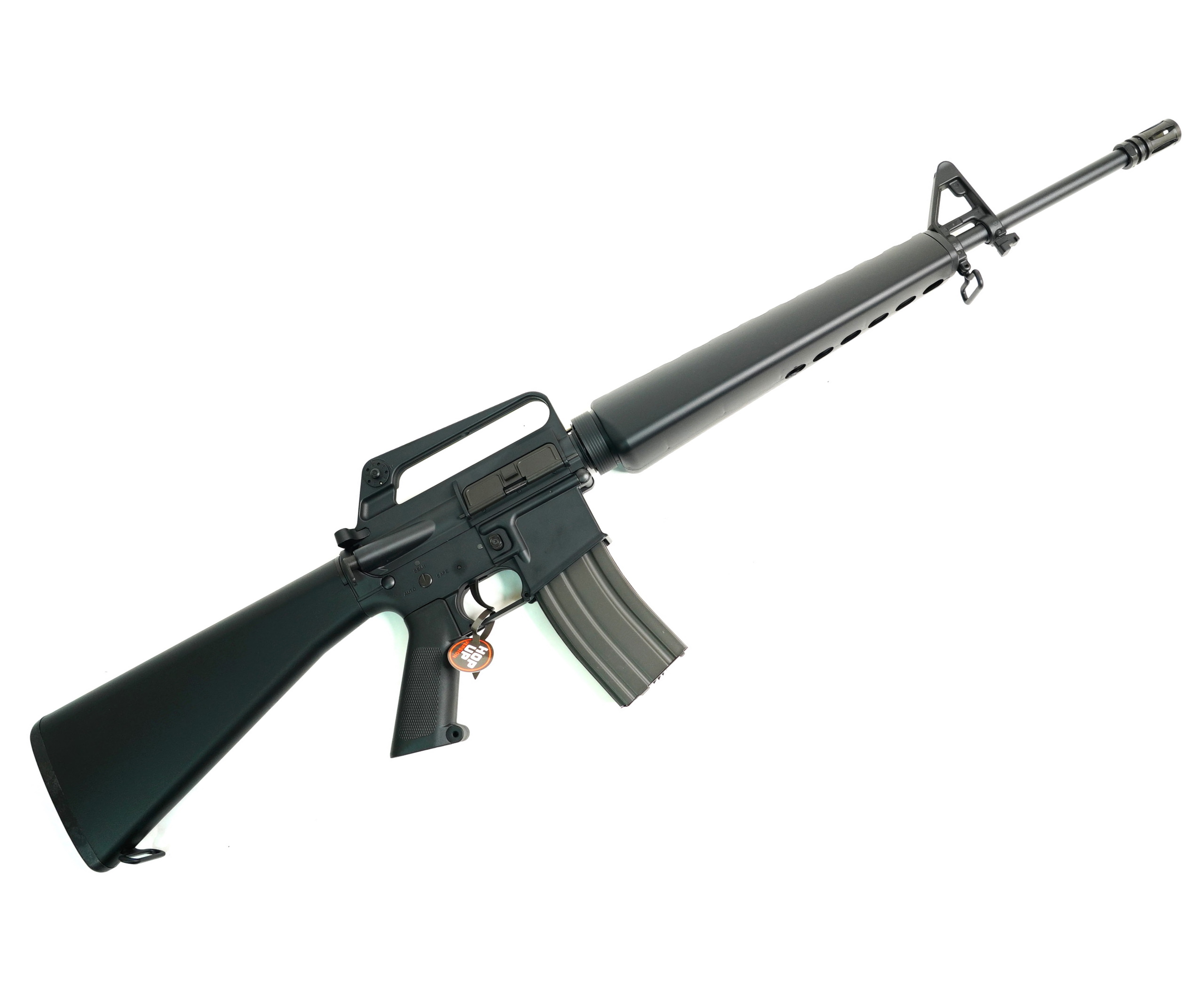 Страйкбольный автомат Cyma M16A3 (CM009B) – это электропневматическая копия американской винтовки, недорогой и довольно качественный привод. Здесь используется гирбокс версии 2, шарики 6 мм вылетают со скоростью 120 м/с. Узел хоп-ап регулируемый, механизм регулировки находится в окне выброса гильз. Магазин на 350 шариков бункерный, кнопка сброса магазина расположена удобно.