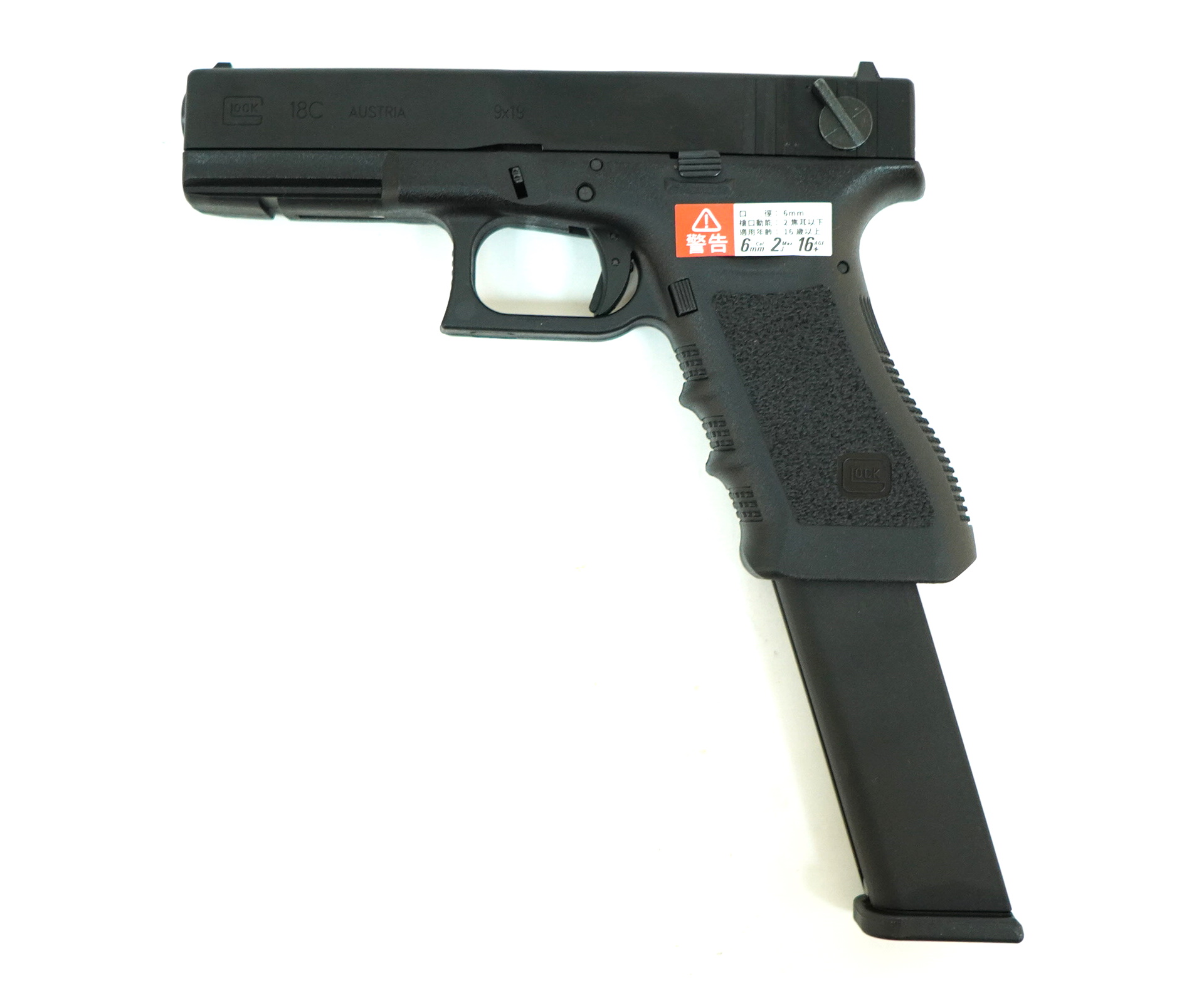 Как и оригинал, этот страйкбольный пистолет изготовлен из пластика ABS и металла. Под стволом установлена направляющая, позволяющая дополнить оружие фонарем или ЛЦУ.  Все органы управления в этой модели доступны без изменения хвата. Рычаг выбора огневого режима расположен на левой затворной грани.