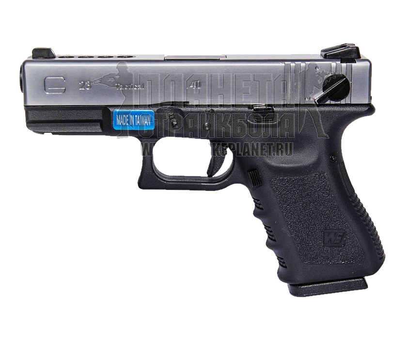 Описание страйкбольного пистолета WE Glock-23 gen3 Silver (WE-G004A-SV):
