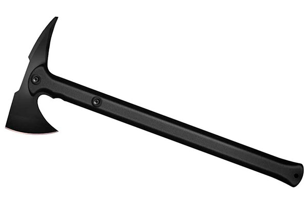 Эту модель часто приравнивают к индейскому томагавку, который уже заслужил похвалы во всем мире. Такие томагавки могут быть туристическими или тактическими. Оба вида уже несколько лет разрабатываются компанией Cold Steel. Модель 90 PTWH Hawk больше универсальная, она хорошо сбалансирована и идеально подходит для множества видов работ вне дома. Как уверяют конструкторы, топор сделан так, что если его метнуть, то вонзится его рабочая часть, а не рукоятка. Материалом для последней выбран полипропилен, он придет легкости. Топор можно с комфортом держать в любой руке. Для удобства хвата возле рукояти имеются выемки для пальцев, особенно удобно их применяют при строгании и мелких работах. Заточка просто прекрасная, ей вполне под силу резать бумагу. Наголовник на клевце не заточен, но с его помощью можно производить хорошие точечные удары. Рабочая часть крепится к рукоятке при помощи двух крепежей, их можно и снять. Лезвие сделано из прочной стали 1955 Carbon Steel. В комплекте есть регулировочные винты. Вес устройства 734 грамма. Рукоятка имеет отверстие для темляка. Лезвие в длину занимает 7,62 см.