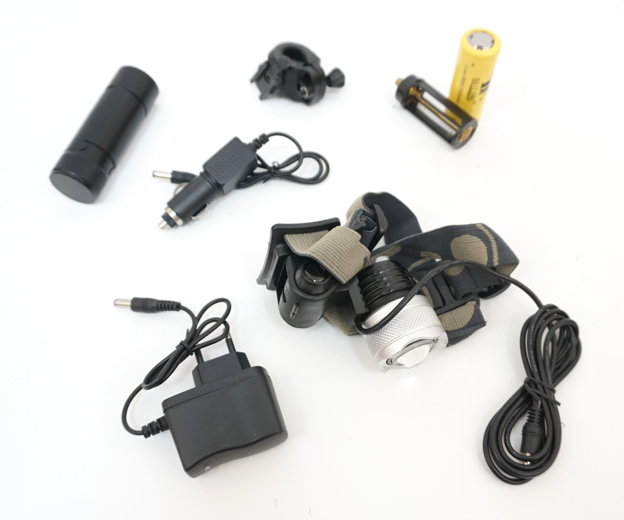 Материал корпуса фонаря – прочный и легкий ABS-пластик. Вес изделия всего 0,18 кг при длине 6 см. Фонарь поставляется в картонной упаковке с аккумулятором, двумя з/у 220В и 12В, креплением на велосипед.