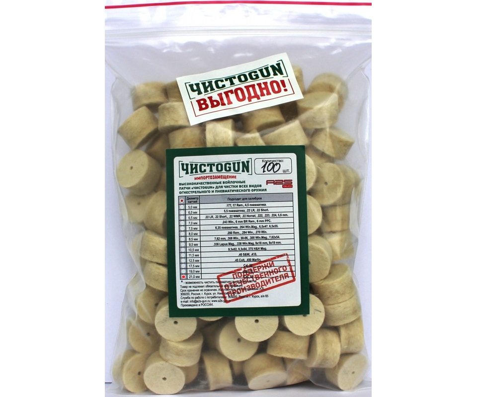 Войлочные патчи ЧИСТОGUN, Cal. 12, диаметр 21 мм, 100 штук