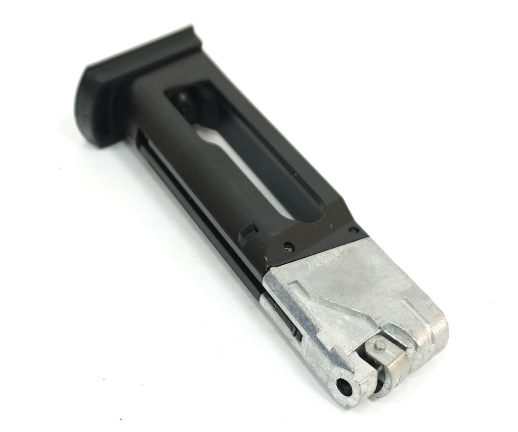 Запасной магазин для пневматического пистолета Gletcher Grach NBB (MP-443 NBB) полноразмерный с газовым клапаном и местом под газовый баллончик CO2. Имеет скрытый поджимной винт и устройство подачи шариков, вместимость — 20 единиц.